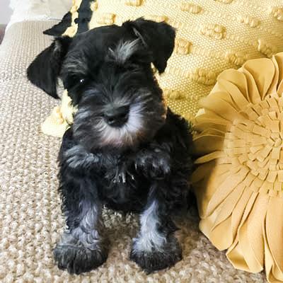 “My family and I cannot be any happier with the silver and black miniature schnauzer we acquired last May, who we named Hope! Not only is she beautiful and the perfect size, but she has the best personality, temperament and intelligence to go along with her looks. At times, I am able to take her to work office with me where she is well behaved and loved by all. Hope is the best companion and loves spending time playing with my kids. Without a doubt Kim loves breeding and raising these beautiful minis and it reflects in all her pups! I would highly recommend Mountain Creek Miniature Schnauzer if you are looking for high quality minis. Kim, is very responsive to all questions you may have and keeps in touch with you throughout the whole process. Our mini Hope has been a godsend and best addition to our family. We are so very grateful to have her. I would not hesitate to come back to Mountain Creek Miniature Schnauzer for my next mini.”