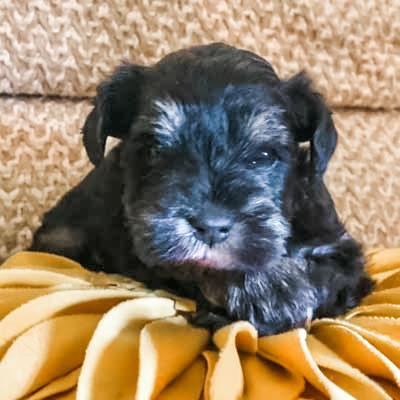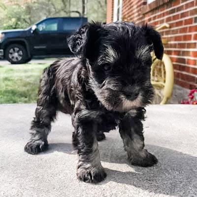There is nothing like a new puppy! But all puppies grow and there is much to learn to accommodate your new pet. Make sure to do research on this breed, and how it might fit your lifestyle before finding a responsible breeder with available puppies. While they are not shedders, they do require grooming about every 6-8 weeks. They are smart and get into mischief if not exercised and challenged accordingly. Mountain Creek Miniature Schnauzers are from champion lines and are bred to the standards with traditional show ring colors.